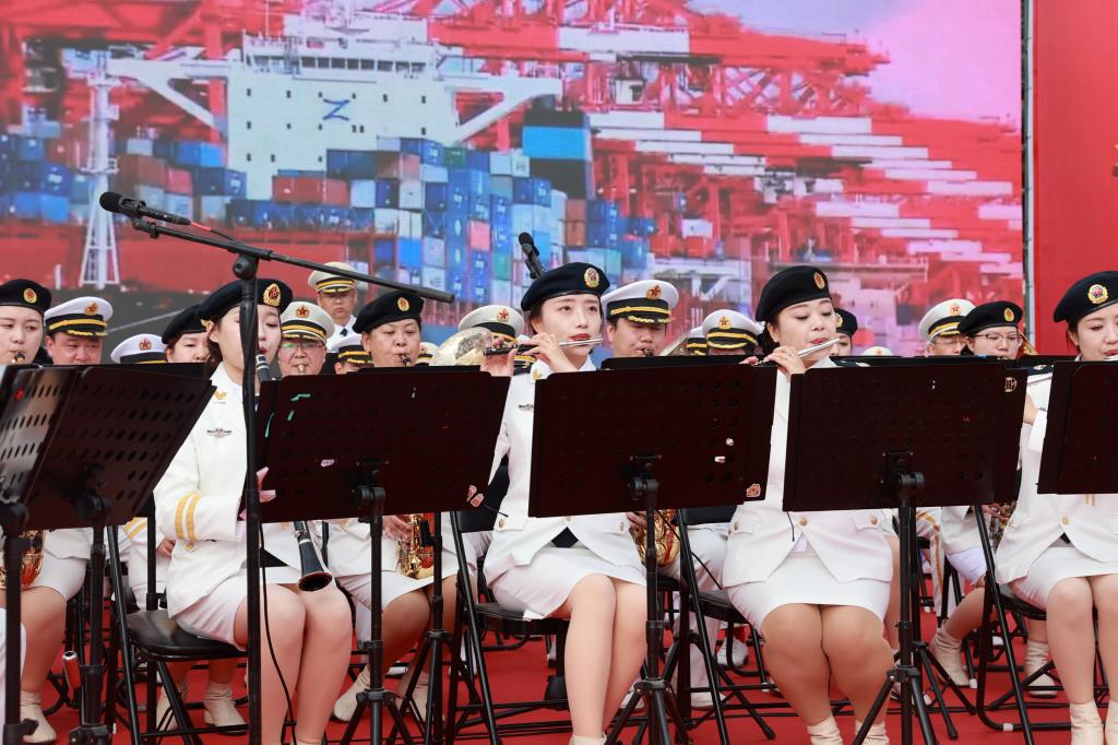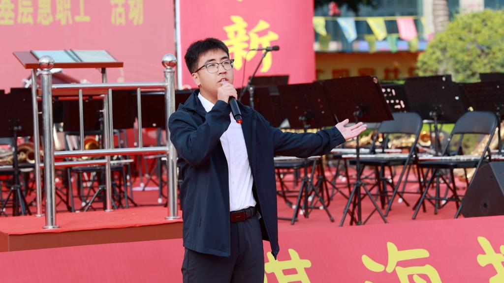 演出分上半場、下半場進行。上半場演出在交響管樂《紅旗頌》的激昂旋律中拉開序幕,氣勢磅礴的樂章、震撼人心的旋律,將家國情懷、奮進力量傳遞到現場的每一名職工的心中。