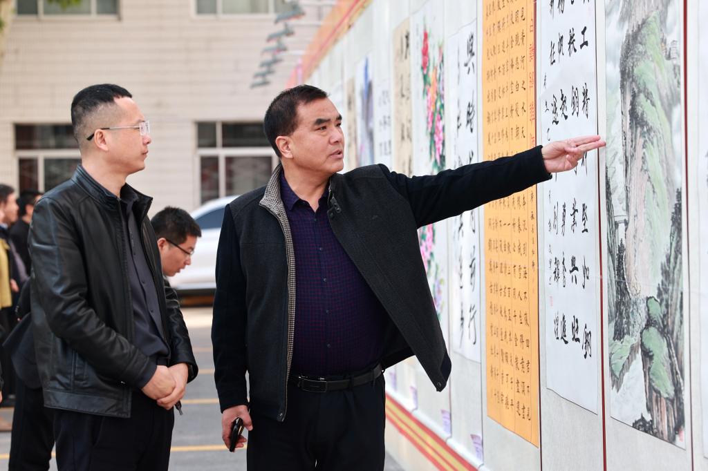 展覽中,一幅幅精美的書畫作品錯(cuò)落有致地懸掛在機(jī)關(guān)樓兩邊,吸引了眾多職工與藝術(shù)愛(ài)好者駐足欣賞。在書法作品區(qū),有的作品筆鋒剛勁有力,彰顯出企業(yè)勇往直前的磅礴氣勢(shì);有的作品則筆法飄逸靈動(dòng),以詩(shī)詞歌賦的形式抒發(fā)著職工對(duì)企業(yè)的熱愛(ài)與贊美之情。美術(shù)作品區(qū)同樣精彩紛呈,色彩斑斕的畫作,生動(dòng)描繪了現(xiàn)代化礦區(qū)的嶄新風(fēng)貌和礦工們的工作與生活場(chǎng)景,傳遞出一代代銅煤礦工特別能吃苦、特別能戰(zhàn)斗、特別能奉獻(xiàn)的“三特” 精神。