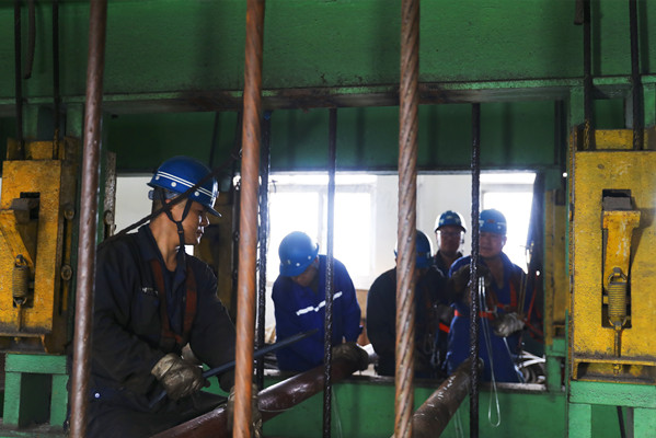 施工過程中,安全管理人員全程緊盯現(xiàn)場,作業(yè)區(qū)域拉設(shè)警戒線,井底施工人員在罐籠頂部安裝分繩器,罐籠平穩(wěn)停至指定位置后,搭建鋼梁穩(wěn)固支撐,并借助拉運裝置,應(yīng)用快速提罐設(shè)備,緊密協(xié)同配合,大幅縮短提升時間。在平臺的施工人員精準安裝自動鎖繩裝置,上下實施新、舊繩頭搭接、拆除舊懸掛裝置等操作。業(yè)務(wù)部門嚴格按照質(zhì)量標(biāo)準要求,做到每道工序、每個環(huán)節(jié)驗收,提供技術(shù)指導(dǎo),確保施工作業(yè)安全有序。